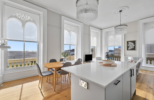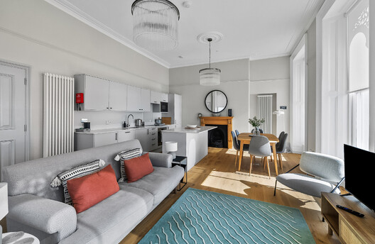 With an open-plan modern kitchen, dining and living room, Mitford has dual aspect dramatic floor-to-ceiling windows, a period fireplace, modern furnishings and high-quality appliances.