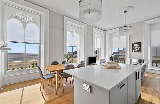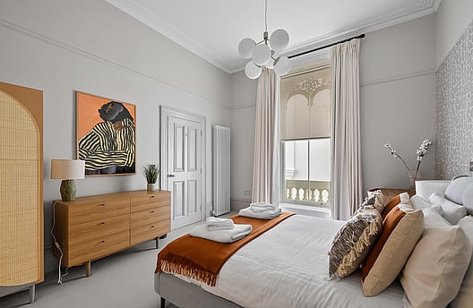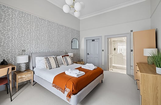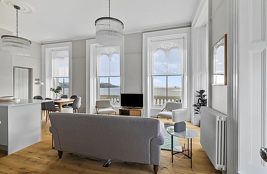 With an open-plan modern kitchen, dining and living room, Mitford has dual aspect dramatic floor-to-ceiling windows, a period fireplace, modern furnishings and high-quality appliances.